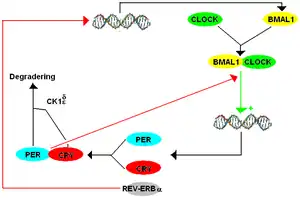 - ↑ Xu, Y.; Toh, K.L.; Jones, C.R.; Shin, J.-Y.; Fu, Y.-H.; Ptáček, L.J. (2007). "Modeling of a Human Circadian Mutation Yields Insights into Clock Regulation by PER2". Cell. 128 (1): 59–70. doi:10.1016/j.cell.2006.11.043. PMC 1828903. PMID 17218255.