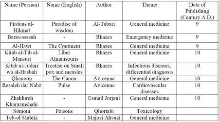 - ↑ Pourahmad, J. (2010-11-20). "History of Medical Sciences in Iran". Iranian Journal of Pharmaceutical Research. 7 (2): 93–99. doi:10.22037/ijpr.2010.750. ISSN 1735-0328.