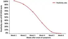 Viral burden measured in upper respiratory specimens declines after symptom onset.[47] Following recovery, many patients no longer have detectable viral RNA in upper respiratory specimens. Among those who do, RNA concentrations three days following recovery are generally below the range in which replication-competent virus has been reliably isolated.[48] No clear correlation has been described between length of illness and duration of post-recovery shedding of viral RNA in upper respiratory specimens.[49]