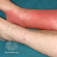Differential diagnosisDeep vein thrombosis, stasis dermatitis, erysipelas, Lyme disease, necrotizing fasciitis[1][4][5]