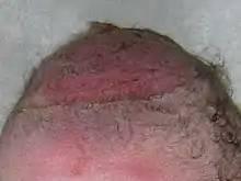 A baby's scalp showing the effects of a vacuum extraction. | |