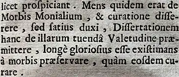 His main precept was given in 1711 in his Oratio xiii. De contagiosa epidemia. On that occasion, he pronounced the well-known precept “far better to prevent than to cure”. This expression evokes the phrase he used some years later in the dissertation on nuns’ health that appeared in the 1713 edition of the Diatriba. He explained, with other words, the idea already expressed earlier, preaching this new message fully and with courageous perseverance.