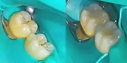 - ↑ Moncada, G; Martin J; Fernandez E; Hempel MC; Mjor IA; Gordan VV (2009). "Sealing, refurbishment and repair of Class I and Class II defective restorations: a three-year clinical trial". J Am Dent Assoc. 140 (4): 425–32. doi:10.14219/jada.archive.2009.0191. PMID 19339531.