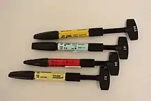 - ↑ Chesterman, J.; Jowett, A.; Gallacher, A.; Nixon, P. (2017). "Bulk-fill resin-based composite restorative materials: a review". BDJ. 222 (5): 337–344. doi:10.1038/sj.bdj.2017.214. PMID 28281590. S2CID 4581987.