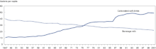 USDA chart showing the increase in soda consumption and the decrease in milk consumption from 1947 to 2001.[5]