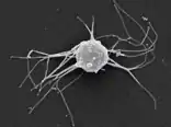From Latin filum meaning "thread" and Greek aster meaning "star", it indicates the main morphological features shared by all their integrants: small, rounded amoeboids with a mononucleated cellular body, covered in long and radiating cell protrusions known as filopodia. These filopodia may be involved in substrate adhesion and capture of prey.