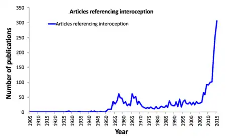 The increased interest in interoception during the late 1950s and the 1960s (as evidenced by the number of papers published) has been referred to as the "biofeedback blip". This was a phase during which many researchers examined humans' ability to gain control over autonomic functions as a method of treatment for various conditions.[21]