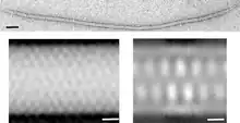 - ↑ Wang, F; Baquero, DP; Beltran, LC; Su, Z; Osinski, T; Zheng, W; Prangishvili, D; Krupovic, M; Egelman, EH (2020). "Structures of filamentous viruses infecting hyperthermophilic archaea explain DNA stabilization in extreme environments". Proceedings of the National Academy of Sciences of the United States of America. 117 (33): 19643–19652. Bibcode:2020PNAS..11719643W. doi:10.1073/pnas.2011125117. PMC 7443925. PMID 32759221.