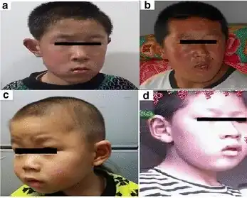 Many of those affected by M2DS also fit diagnostic criteria for autism.[5] M2DS can be associated with syndromic facies, namely an abnormally flat back of the head, underdevelopment of the midface, ear anomalies, deep-set eyes, prominent chin, pointed nose, and a flat nasal bridge.[5]