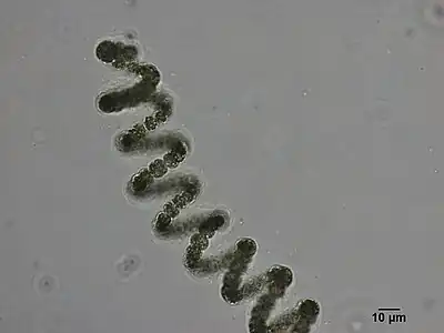 - ↑ Gugger M, Lyra C, Henriksen P, Couté A, Humbert JF, Sivonen K (September 2002). "Phylogenetic comparison of the cyanobacterial genera Anabaena and Aphanizomenon". International Journal of Systematic and Evolutionary Microbiology. 52 (Pt 5): 1867–80. doi:10.1099/00207713-52-5-1867. PMID 12361299.