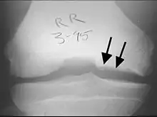 - ↑ Milgram JW (February 1978). "Radiological and pathological manifestations of osteochondritis dissecans of the distal femur. A study of 50 cases". Radiology. 126 (2): 305–11. doi:10.1148/126.2.305. PMID 622473.