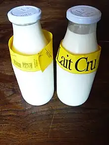 In the European Union it is required that raw milk and products made with raw milk must be labelled to indicate this.[38] Under EU hygiene rules, member states can prohibit or restrict the placing on the market of raw milk intended for human consumption.[39] Individual member states are also free to implement their own stricter requirements. Usually special sanitary regulations and frequent quality tests (at least once per month) are mandatory.[40]