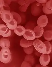 Saccharomyces cerevisiae (brewer's yeast) as seen in a scanning electron micrograph.