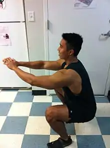 - ↑ Escamilla RF (2001). "Knee biomechanics of the dynamic squat exercise". Med Sci Sports Exerc. 33 (1): 127–41. doi:10.1097/00005768-200101000-00020. PMID 11194098.