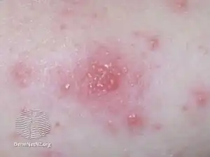 SymptomsVery small fluid-filled blister in skin[1]