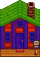 Shown below are the areas where buildings can be painted. Players can paint any combination of the "building" (red area), "trim" (blue/purple area), and/or "roof" (green area).