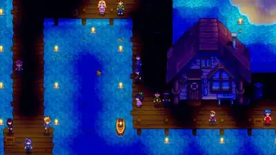 During the festival, villagers gather at the docks to watch migrating jellyfish who are attracted to the light of a torch that Mayor Lewis lights. Talk to Mayor Lewis to begin the festival.
