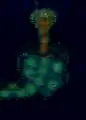 East of the stairs north of the Dig Site is the Ginger Island Mushroom Cave. Initially, there is a boulder blocking the entrance, and someone behind it is calling for help. Place any bomb to remove the boulder, thus freeing Professor Snail and unlocking the Island Field Office. The cave spawns random new mushrooms every day. Unlike the farm's cave, its mushrooms grow directly on the ground, so players benefit from the Gatherer or Botanist professions when collecting them. You can buy perfection waivers from Fizz in this cave.