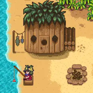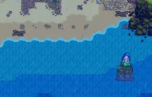 On rainy days a Mermaid will appear on the large rock by the shore. If the player places Flute Blocks and tunes them to play the Mermaid's song, she will reward them with 5 Golden Walnuts.