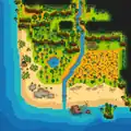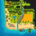 This area is unlocked by building the Island Beach Resort, which clears the debris east of the dock. It contains a star-shaped tide pool, a large rock offshore, and a hidden pirate's cove.