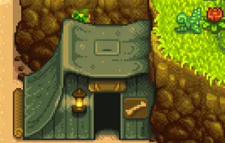 At the farthest north is a volcano dungeon with ten levels, eight of which are randomly generated similar to the Skull Cavern. The fifth level has a shop, and at the tenth and last level is the Forge, where tools and weapons can be upgraded using Cinder Shards.
