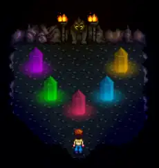 Locations | Backwoods • Beach • Bus Stop • Calico Desert • Cindersap Forest • Farm • Farm Cave • Farm Pond • Graveyard • • Mastery Cave • Minecart • Mines • Mountain • Mutant Bug Lair • Pelican Town • Quarry • Quarry Mine • Railroad • Secret Woods • Sewers • Skull Cavern • Summit • Tunnel • Volcano Dungeon • Witch's Swamp |