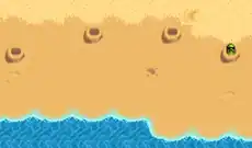 At first, only the path to the Island East is available, as two large turtles block the paths to Island North and Island West. The player must follow Leo who appears and runs into the jungle in Island East. Interactions in Leo's hut will remove the turtle blocking the northern exit, and upon returning to the beach a Magma Sprite appears and leads the player north to the Volcano. The turtle blocking the path to Island West can be removed by paying the nearby parrot 10 Golden Walnuts.