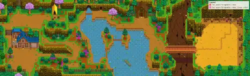 - The bridge leading to the Quarry at the east end of the map can be repaired (by completing all Crafts Room Bundles or purchasing "Bridge" from the Joja Community Development Form for