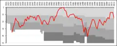 - ↑ The title of "Swedish Champions" has been awarded to the winner of four different competitions over the years. Between 1896 and 1925 the title was awarded to the winner of Svenska Mästerskapet, a stand-alone cup tournament. No club were given the title between 1926 and 1930 even though the first-tier league Allsvenskan was played. In 1931 the title was reinstated and awarded to the winner of Allsvenskan. Between 1982 and 1990 a play-off in cup format was held at the end of the league season to decide the champions. After the play-off format in 1991 and 1992 the title was decided by the winner of Mästerskapsserien, an additional league after the end of Allsvenskan. Since the 1993 season the title has once again been awarded to the winner of Allsvenskan.[2]