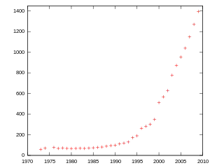 Early on, the organization had ambitious plans for building a temple, getting a burial ground, and dividing the land into goðorð, led by individual goðar (a nomenclature borrowed from the political system of the Icelandic Commonwealth).[32] However, membership in the organization did not increase as quickly as these goals would have necessitated. In 1973 Ásatrúarfélagið had 58 registered members, in 1974 it had 70 and in 1976 it had 77. As its leaders realized that the organization's more ambitious goals could not be quickly achieved, the society settled down to a low level of activity.[32][33] In 1983 a blót had not been held for three years, but one was arranged to provide the makers of a documentary with material.[34][35]