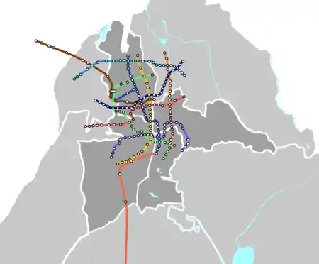 Line | Terminals | Operational | Last extension | Length km |