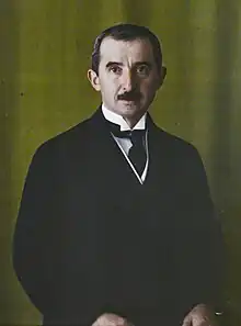 İsmet İnönü (born Mustafa İsmet) was born in 1884 in Smyrna (İzmir) in the Aidin Vilayet to Hacı Reşit and Cevriye (later Cevriye Temelli). Hacı Reşit was retired after serving as director of the First Examinant Department of Legal Affairs Bureau of the War Ministry (Harbiye Nezareti Muhakemat Dairesi Birinci Mümeyyizliği).[2] A member of the Kürümoğlu family of Bitlis, İnönü's father was born in Malatya. According to its members studying the ancestral background of the family, Kürümoğlus were of Turkish[3] origin, while secondary sources refer to the family as of Kurdish descent.[4][5][6][7] His mother was a daughter of Müderris Hasan Efendi who belonged to the ulema[2] and was a member of a Turkish family of Razgrad (present-day Bulgaria).[8] İsmet was the family's second child, he had three brothers including the family's first child, Ahmet Midhat, two younger brothers Hasan Rıza and Hayri (Temelli), as well as a sister Seniha (Otakan).[9] Due to his father's assignments, the family moved from one city to another.