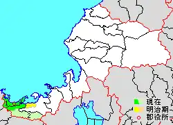 * yellow - areas formerly within the district borders during the early Meiji period