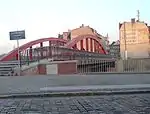 A main road runs just south of Śródka, connecting it with Ostrów Tumski and central Poznań to the west, and with the roundabout called Rondo Śródka at the district's south-east corner. This road was built in the 1960s, with the demolition of some buildings on the southern edge of Śródka. Since 7 December 2007 Śródka has also been linked with Ostrów Tumski by a footbridge ("Bishop Jordan's Bridge", Most biskupa Jordana), constructed from the former main span of the now reconstructed St. Roch road bridge which crosses the Warta further south. A bridge previously existed in this place until 1969.