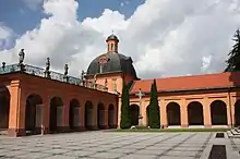 The Jesuits were eventually removed from the Święta Lipka monastery by the Prussians after the Partitions of Poland in the 18th century.[17] They returned to the convent in 1932. After World War II, when Warmia-Masuria returned to Poland under the Potsdam Agreement, Święta Lipka was transformed into an important sanctuary, alongside the Jasna Góra Monastery. Furthermore, it remains an outstanding example of Baroque art and architecture.[18]
