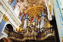 The most distinctive attribute and a treasure of the sanctuary is the moving pipe organ, erected in the years 1719-1721 by Johann Josua Mosengel.[14][15] The decorative figures and sculptures move as the organ is being played, making it one of the most unique instruments ever made.[15][16] In 1944, it was damaged but repaired soon after.