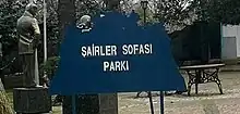 A part of Beşiktaş Vişnezade Park is oriented under the name "Şairler Sofası". Şairler Sofası is the 1998 sculpture by Gürdal Duyar whose name the park goes by. The depicted characters in the sculpture as well as the figures depicted in the other sculptures in the greater park are 19th and 20th century poets who have mostly lived in and around Beşiktaş. [1] In the sculpture Şairler Sofası, Duyar has composed it such that the poets are "hand in hand" and "shoulder to shoulder". It includes the poets Behçet Necatigil, Sabahattin Kudret Aksal, Cahit Sıtkı Tarancı, Oktay Rıfat, Orhan Veli, Neyzen Tevfik and Nigâr Hanım together in one composition. [2] The Architectural design of the park was done by Erhan İşözen.[2] The park was opened in 1998 together with the first sculptures. at the inauguration of the park the mayor of Beşiktaş, Ayfer Atay, said that the park will be a place where books will be signed and poems will be read.[3] The park has become a place where more poets and other members of Turkish society were honored with monuments over the years.