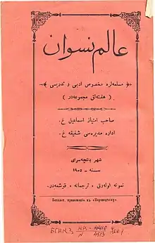 İsmail Gaspıralı founded the magazine Alem-i Nisvan ("Women's World") in 1906 after realizing that Terciman was inadequate in matters of improving the low social status of women in Russia, women's education and employment. Şefiqa was appointed head of the magazine. Published articles informed, directed, encouraged and organized Turkic women, giving detailed information on women and women's movements in the Turkish and Islamic world.[2]