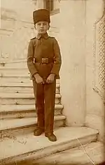 Şehzade Mehmed Orhan was born on 12 October 1909 in Üsküdar.[3] According to his aunt Ayşe Sultan, he was born in Naime Sultan's palace.[4] His father was Şehzade Mehmed Abdülkadir, son of Abdul Hamid II and Bidar Kadın, and his mother was Mihriban Hanım,[4] and ethnic Abkhazian.[5] After his parents divorced in 1913, he and his mother went to live in with his uncle.[6] He was then enrolled in Galatasaray High School.[6] and Robert College[7]