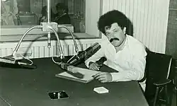 Čičak rediscovered his own way to fight against the gloomy days of besieged and suffocated Sarajevo. He continued organizing concerts at Sloga and hosting many radio shows when there was electricity to allow them to be broadcast. From 1993 to 1995 in Sarajevo's radio station The Wall, he was the editor and host of the show Rock 'n' roll radio, which he called, thanks to blackouts in those years, Accumulator Radio. Still, in polls among listeners, it was the most listened radio show in those years. The same thing happened with his TV Show on NTV 99 Above the Clouds (1996–1997).[12] He was the organizer of the first rock concert during the war (March 23, 1993) at Chamber Theater 55, entitled Give Peace a Chance, that gathered all musicians who stayed in war-torn Sarajevo. A special event was a concert of Joan Baez on April 14, 1993, in the cinema hall Imperial,[13] that attracted the attention of world media.