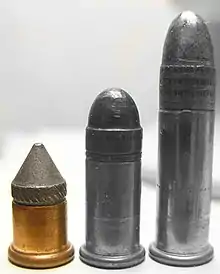 - ↑ Cartridges of the World 11th Edition, Book by Frank C. Barnes, Edited by Stan Skinner, Gun Digest Books, 2006, ISBN 0-89689-297-2 pp. 490, 492