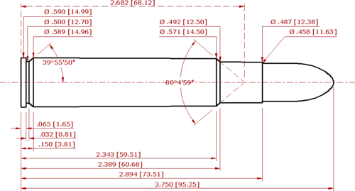 - Schematic of the .450 Dakota. All dimensions in inches [millimeters].