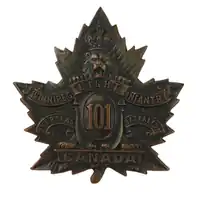 The 101st Battalion (Winnipeg Light Infantry), CEF, was an infantry battalion of the Great War Canadian Expeditionary Force. The 101st Battalion was authorized on 22 December 1915 and embarked for Great Britain on 29 June 1916, where, on 13 July 1916, its personnel were absorbed by the 17th Reserve Battalion, CEF, to provide reinforcements to the Canadian Corps in the field. The battalion disbanded on 12 October 1917.[1] It was recruited in, and was mobilized at, Winnipeg, Manitoba.[2]