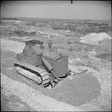 After weeks of bitter fighting around Hill 112 (Operation Jupiter) and Mont Pinçon (Operation Bluecoat), 43rd Division finally captured the latter on 7 August and prepared to bear down on the northern rim of the Falaise Pocket.[45][46][47] 204th Fd Co discovered how strong the opposition would be when No 1 Platoon found itself under heavy machine gun fire from both flanks while clearing the route to Le Plessis Grimault at the foot of Mont Pinçon. They deployed to attack but found their firepower inadequate and the company commander withdrew the platoon by sections to the vehicles, aboard which they then shot their way through, followed by 207th Field Park Company's armoured bulldozer.[48]