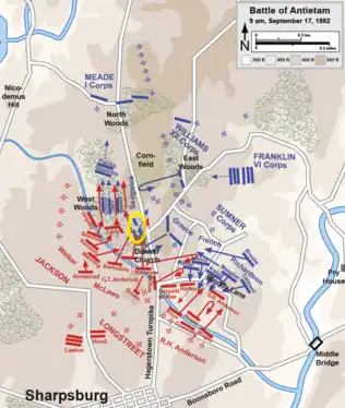 - ↑ Priest, John Michael (1993). Antietam: The Soldiers' Battle. Oxford, UK: Oxford University Press. pp. 90–108. ISBN 0-19-508466-7.