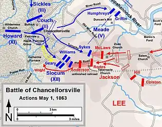 - ↑ Sears, Stephen (1996). Chancellorsville. NY, NY: Houghton Mifflin Co. pp. 207–211. ISBN 978-0-395-87744-9.