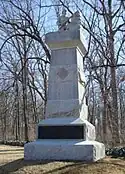 The regiment's initial movement in the attack was hindered by one of the supporting batteries cutting the regiment's column in two.[72] After much arguing, the regiment was able to regroup and advance south. Their division, Birney's, moved south down Furnace Road and the thick forest on either side.[73] The Maine soldiers noted Berdan's men slipping through the heavy undergrowth on the flanks of the column.[70] Just south of the furnace, the column made contact with the enemy.
