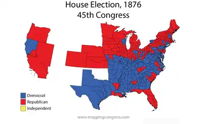Map of U.S. House elections results from 1876 elections for 45th Congress