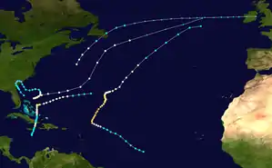 The final storm was last noted on October 17. These dates fall within the period with the most tropical cyclone activity in the Atlantic. Only two tropical cyclones during the season existed simultaneously. The hurricane brought heavy rainfall to Jamaica, resulting in eight deaths. This storm also left damage to crops and vessels in portions of the Bahamas and Cuba. Because technologies such as satellite monitoring were not available until the 1960s, historical data on tropical cyclones from this period may not be comprehensive. An undercount bias of zero to six tropical cyclones per year between 1851 and 1885 has been estimated.[2]