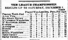 6 | West Bromwich Albion | 22 | 10 | 2 | 10 | 40 | 46 | 0.870 | 22 |